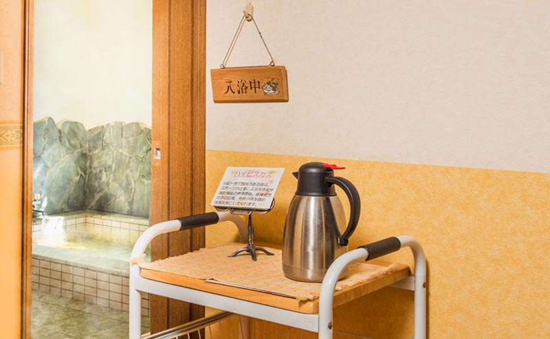 湯上りに飲んでいただける「心と体にやさしいオリジナル・アイスハーブティー」が、とても美味しいと喜んでいただいております。